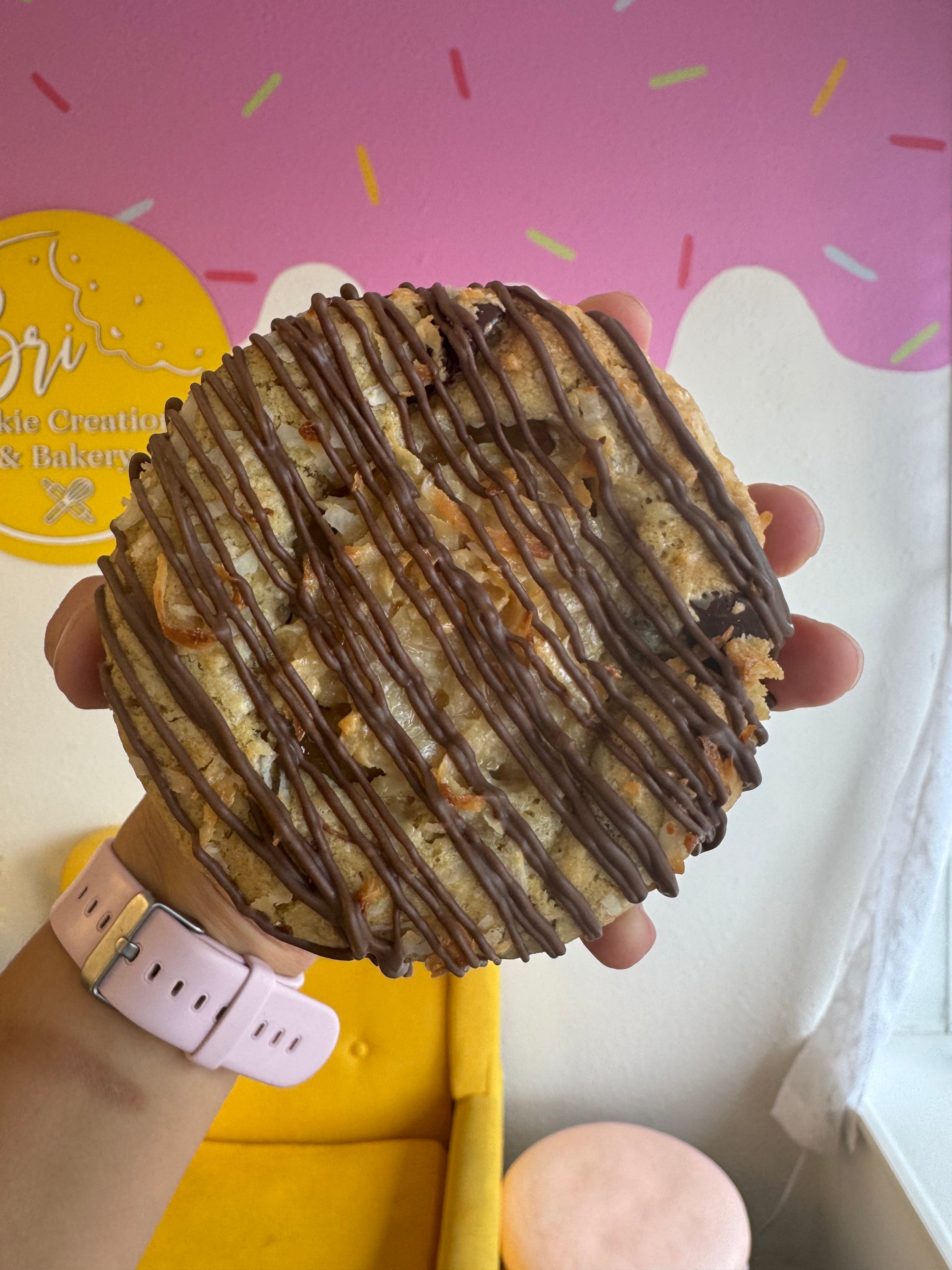 This beauty is as delicious as it looks! Layered with coconut, caramel, and chocolate, finished with a stunning chocolate drizzle AND our very first chocolate covered bottom.